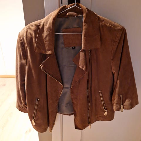 Fake semsket skinn i brun fra Zara el mango i small. Ikke merker eller synlig slitasje. Selges billig til 150.-
