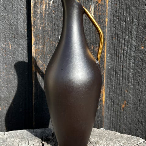 Retro keramisk vase med giraffmotiv og gul blomsterdesign