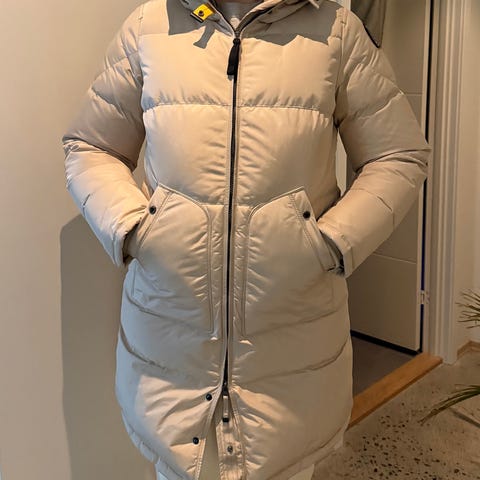 Selger en Parajumpers vinterjakke fra Masterpiece Series i beige farge. Dame, størrelse Large. Jakken er svært varm og behagelig, med flott pelshette.