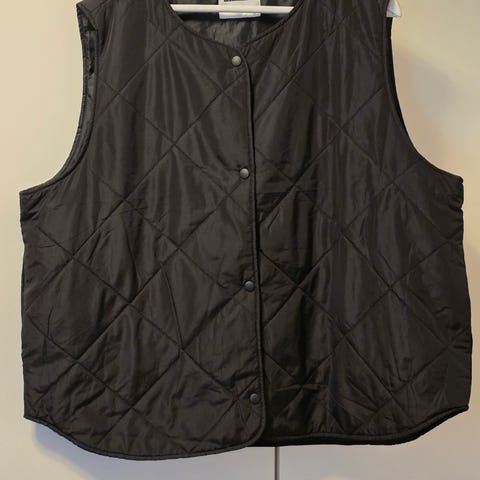 Elegant og lett quiltet vest med rett fasong. Str. XS, men passer også S. Den lange modellen gir et tidløst uttrykk og er perfekt som et lag-på-lag-plagg gjennom sesongen.