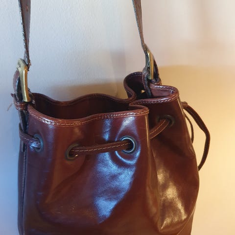 Pent brukt stor veske i canvas og lær.