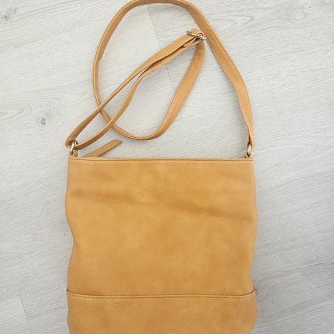 Next dameveske laget av kunstlær i grønn. Vesken har et krokodillemønster og inkluderer både håndtak og justerbar skulderrem. Den har glidelåsåpning på toppen. Innvendig har den ett stort hovedrom med to små rom på hver side, hvorav den ene med glidelås.