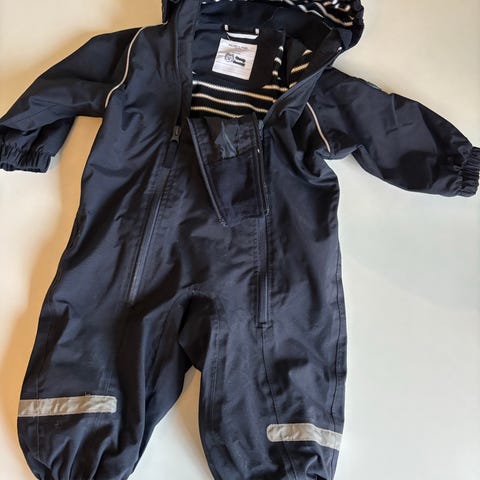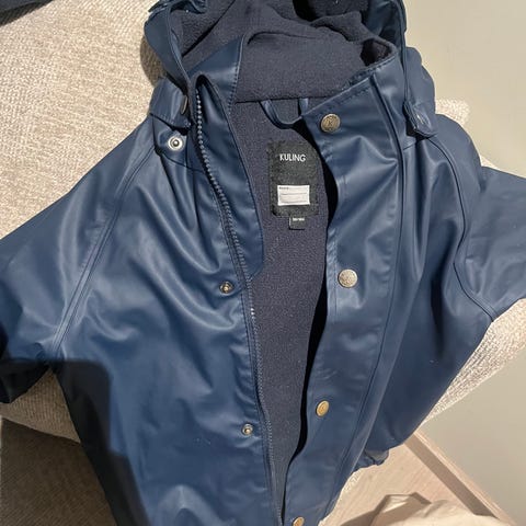 Kuling fleece foret regnset. Opphengshank i nacken på buksen har raknet, men bortset från det är det ok pen stand. Detta kan ganska enkelt fixas.