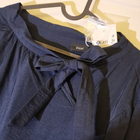 Toppen er i str XL, har hullmønster i øverste del samt noe på armene