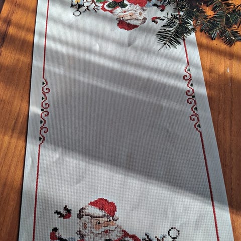 Selger denne broderipakken til å lage en løper/duk med julemotiv. Mål: 24 x 90 cm. Uåpnet, følger med mønster, garn, nål og stoff.