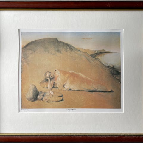 Originalt litografi av Eldar Parr, håndsignert nede t.h. og merket XV nede t.v. (romertall/kunstneropplag). Montert i klassisk treramme med forgylt innerlist. Papiret er i pen stand – se nærbilder av signatur og opplagsmerking.