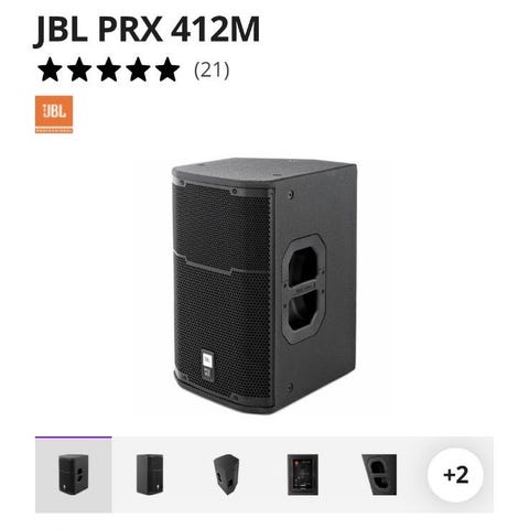 JBL PRX512M i god stand. Dette er en aktiv (selv forsterket) 2-veis høyttaler som både kan brukes som front-PA eller scene monitor, takket være dens fleksible design og DSP-muligheter.