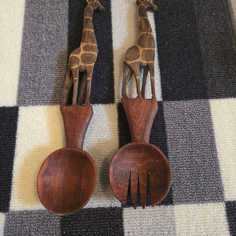 Flott kakespade sett og salatbestikk med hjort. Perfekt til hytta.