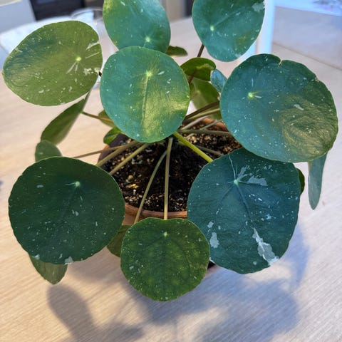 Ung, fin plante. Satt i jord for noen uker siden, nå i fin vekst. Ca 25 cm mellom ytterpunkt av bladene, dvs. plantens bredde. Leveres i plastpotte, ytterpotte i keramikk er ikke inkludert.