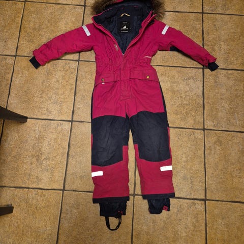 Noen fler bruksmerker på utedressene, men ingen hull. 2 av dressene må ha nye fotstrikker.