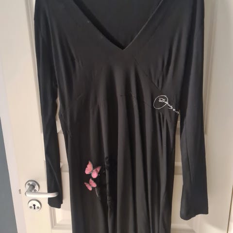 størrelse 42. Kjolen har knappelukking foran og detaljer med rynking på overdelen. Hel og pen ,lite brukt