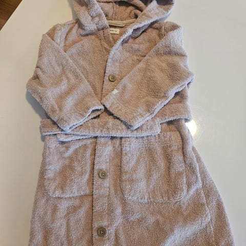Deilig rosa morgenkåpe selges da den er blitt for liten. Kjøpt ny i butikk til datteren vår. Den er lite brukt og i god stand. Snøring i livet og to lommer. Den er rosa, men fargen på bildene er mindre rosa enn i virkeligheten.