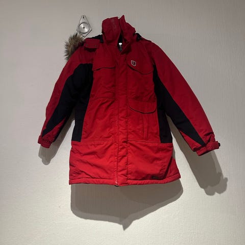 Svært pent og lite brukt jakke. Til tross for at jeg bruker str M kjøpte jeg jakken fordi det var den siste som var igjen og jeg likte den veldig godt. Skuldrene har imidlertid ikke blitt noe smalere, så nå håper jeg noen som faktisk passer i str S kan kjøpe den 😆