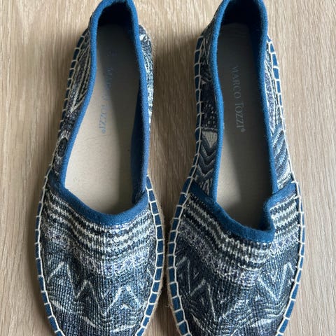 Lekre sko med glitter. Lave, ballerina-aktige sko med glitter i blåtoner. Pent brukt