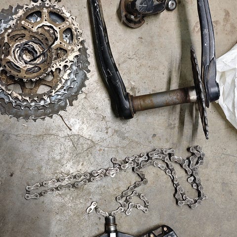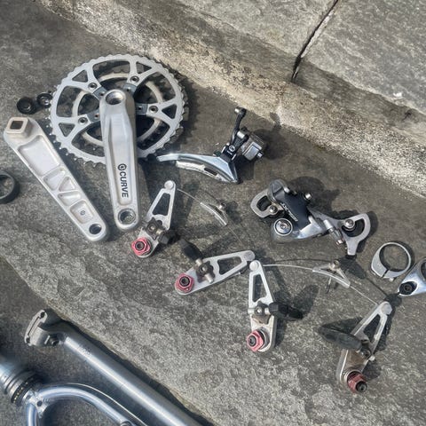 Alt er intakt og velfungerende, inkludert kranklageret. Styre, stem, barends, holker og pedaler medfølger ikke.