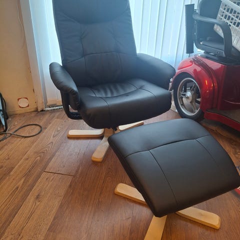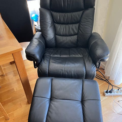 Ny lenestol med forskammel/lenestol i imitert skinn