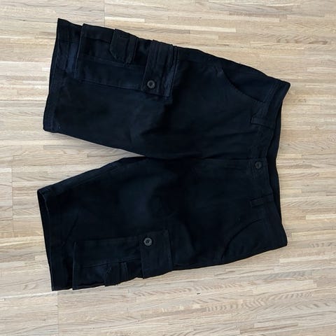 Svarte shorts i 95 % bomull og 5 % elastan. Vasket én gang, men aldri brukt.