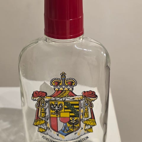 Den ble kjøpt sammen med 2 sett porselenskrus med underskål til Rüdesheimer Café (den tyske varianten av Irish Coffee), og har 2 små uåpnede flasker (2cl).
