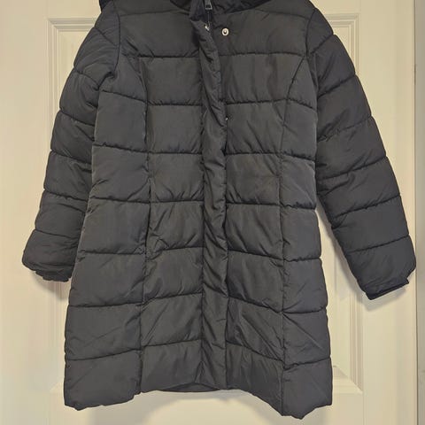 H&M vattert jakke for barn i størrelse 146. Jakken er grønn og designet for unisex bruk. Den har en polstret konstruksjon som gir varme og komfort. Jakken har glidelås og knapper foran, samt lommer på sidene.
