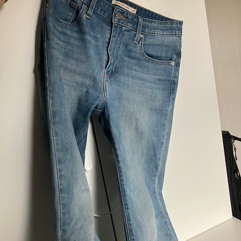 Levis High Loose jeans str 24. Pent brukt. Buksebeina har tidligere vært lagt opp med stryketape, så stoffet er en anelse lysere i overgangen, synes knapt.