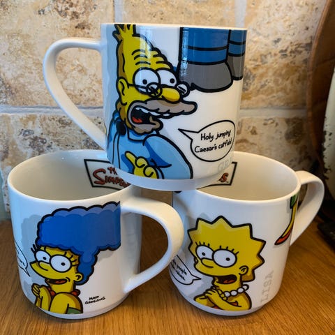 Flott krus med Simpsons. Diameter 8cm og høyde 9,5cm. Pent brukt.