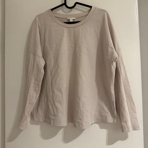 COS Genser i beige farge størrelse L. Genseren er laget av ull og viskose. Den er litt tung og faller derfor veldig fint