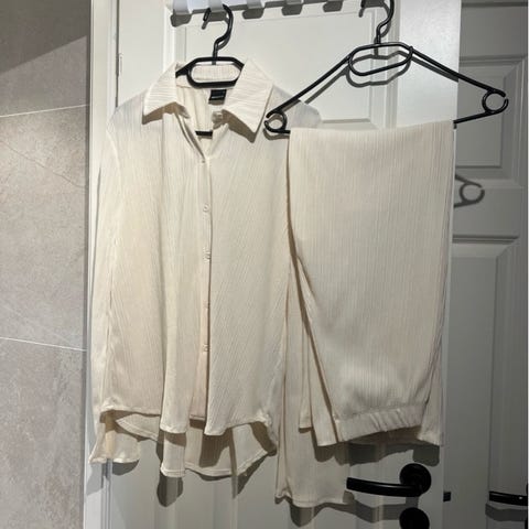 Selger en herlig bukse og skjorte i 100% lin. Behagelig å ha på seg. Nesten ikke brukt. Passer en M/L str. passer fint sammen. 500kr pr del.😊