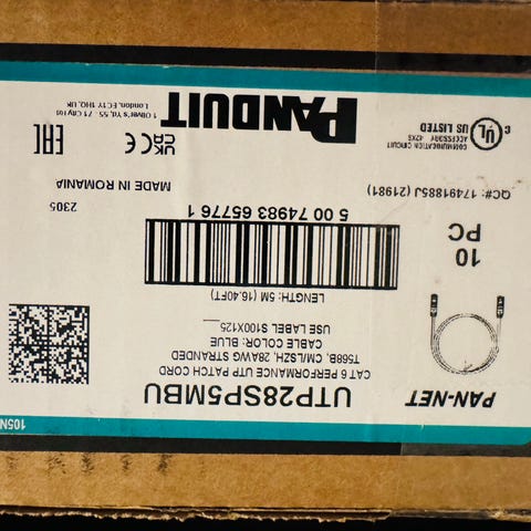 The Panduit UTP28SP5MBU is a Category 6 UTP patch cord, small diameter, blue, 5 meters long. Pricing can vary depending on the supplier, region, and quantity purchased. Since your box contains 10 pieces, here’s a rough estimate based on typical market rates: