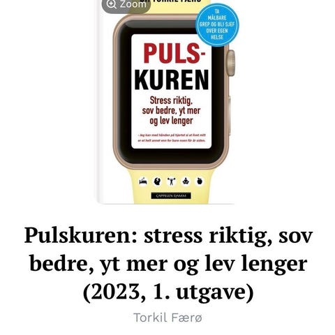 PULS-KUREN Pulsmonitor for stressmestring. Boken fokuserer på å hjelpe brukeren med å redusere stress, sove bedre og leve lenger ved å overvåke pulsen og gi innsikt i kroppens reaksjoner. Inkluderer funksjoner som måling av puls, HRV (Heart Rate Variability), og veiledning for å forstå og håndtere kroppens stressnivåer. Egnet for brukere som ønsker å forbedre sin mentale og fysiske helse gjennom bedre stresskontroll og økt bevissthet om kroppens signaler.