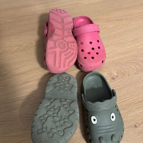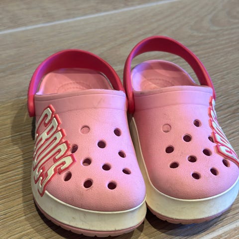 Crocsene er kun brukt innendørs et par ganger, da de allerede var blitt for små innen sommeren kom. De fremstår derfor som tilnærmet nye og ubrukte.