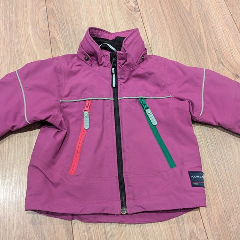 En veldig fin jakke til jente i str. 80 (alder 9 til 12 måneder). Den var pent brukt og har ingen synnlige bruksmerker.