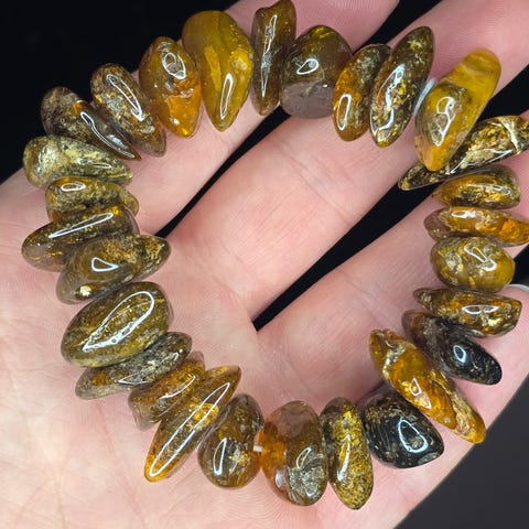 Kjedet har en naturlig, varm glød med små inneslutninger som gir det en helt spesiell karakter og sjarm. Under vanlig lys er ravet delvis gjennomsiktig, og under UV-lys lyser det vakkert grønt.