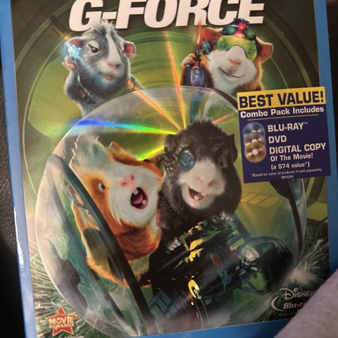 G-Force DVD med animert familieunderholdning. Inneholder en historie om spesialtrente marsvin som utfører oppdrag. Passer for barn og familier.