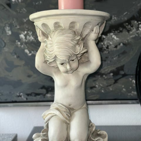 Engel statue med to lysholdere til salgs.
