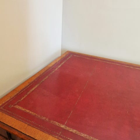 Antikk Skrivebord i Tre med Grønn Skinnplate