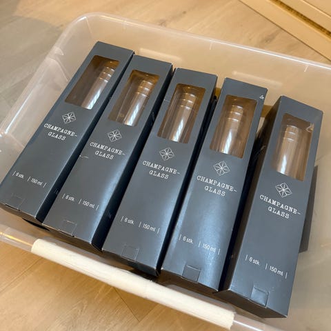 Julenisse champagneglass i 8-pakning med motiv av en liten nisse som står på ski. Glassene er laget av klart glass og har et dekorativt trykk. Egnet for servering av champagne eller musserende vin.