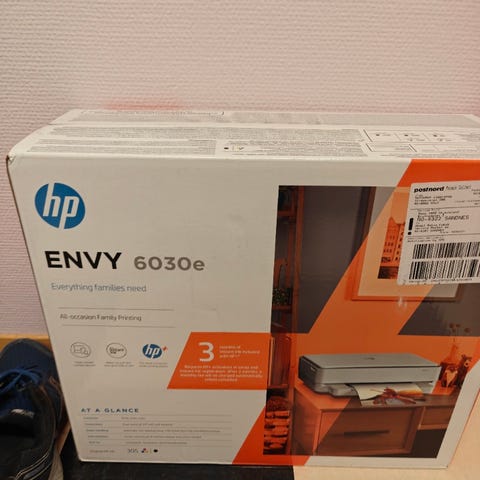 HP ENVY 6032e multifunksjonsskriver selges. Skriveren støtter utskrift, skanning og kopiering. Fra 2023 men omtrent ikke brukt, og det er derfor den selges.