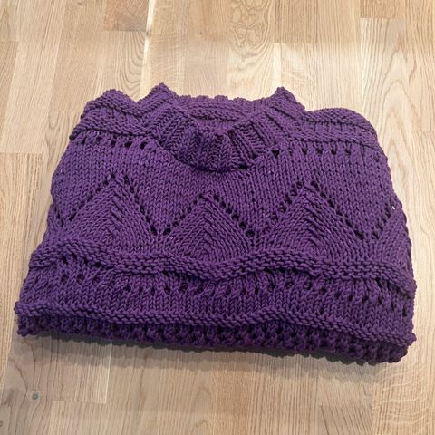 Kjøpte i str xl/xxl, men ble strikket så den skulle passe etter vektnedgang. Men den er dessverre for stor.