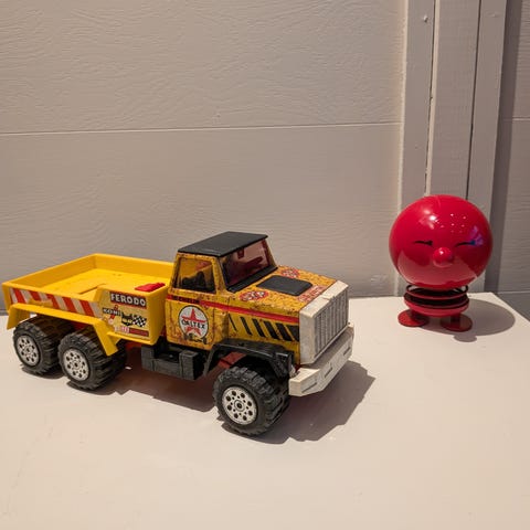 Forskjellige typer leker, i varierende tilstand. Vi har postet i forskjellige antikk/gamle leker grupper og fått prisestimat på ca 1000kr per stykke, bortsettes fra «Old-timer» bilen i original esken.