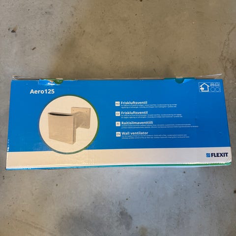 Lydventil Aero 125dB fra Flexit sikrer kontinuerlig tilførsel av friskluft i boligen. Med kondensisolering, filter og lyddempende egenskaper mot utvendig støy.