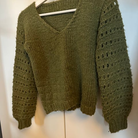 Hjemmestrikket v-hals genser dus grønn M
