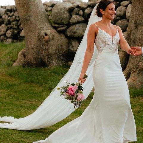 Brudekjole selges. Stilren og klassisk kjole med fine detaljer. Enkel å tilpasse. Ta kontakt dersom du ønsker å prøve eller har andre spørsmål. Kan også sendes 😊