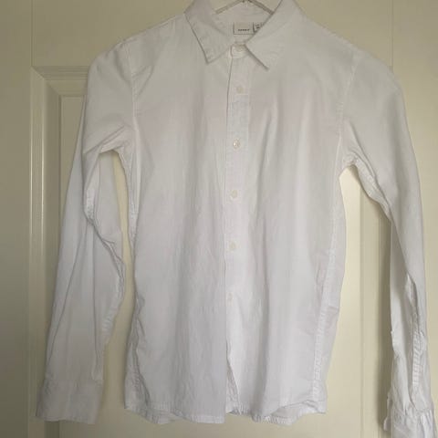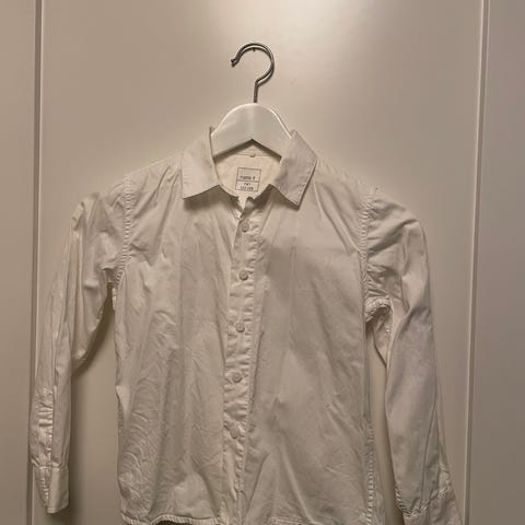 Ingen slitasje eller lignende, men noen mindre flekker 2 steder (se bilder). Tipper dette går helt fint bort med sitronsåpe. Har også en annen penskjorter til salgs i samme str om ønskelig (se mine andre annonser). Disse kan eventuelt selges samlet for 200 kr og kan sendes i samme pakke.