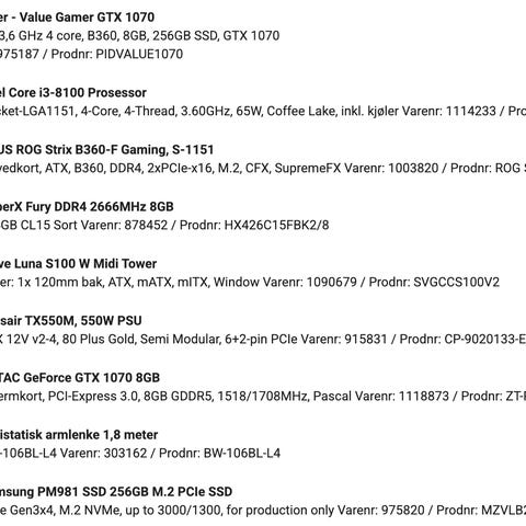 Alt av komponenter er kjøpt fra komplett, har vært en rå maskin uten noen som helst problemer siden jeg kjøpte og bygget den i 2015.