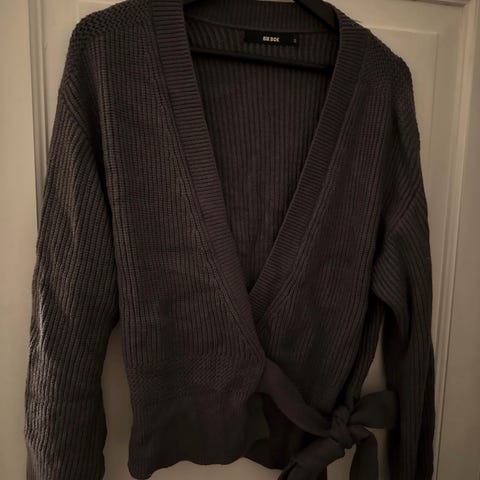 Ribbestrikket crop-cardigan fra Zara med knyting. Størrelse S. I god stand