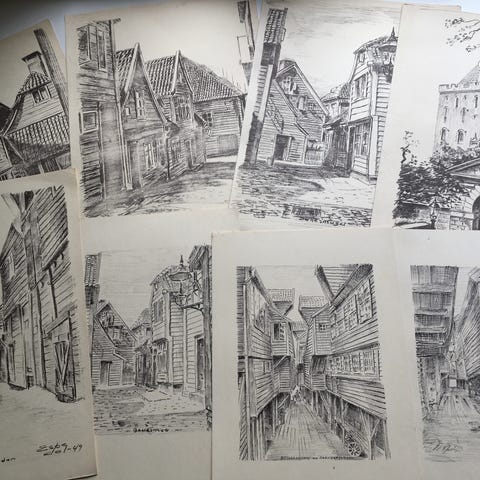 Tegninger og sider komplette og uten rift