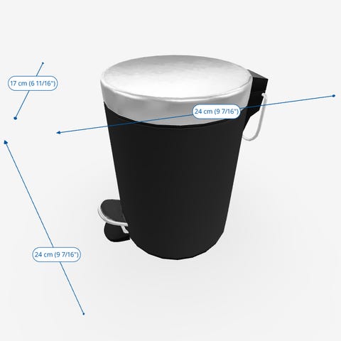 IKEA Søppelbøtte og avfallsbøtte sett bestående av en svart søppelbøtte med pedal og en hvit avfallsbøtte. Søppelbøtten har en kapasitet på 3 liter. Materialet er holdbart og egnet for innendørs bruk.