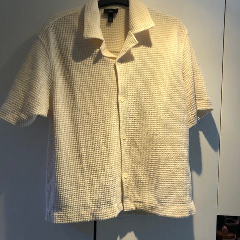 H&M Beige Pikéskjorte for herre i størrelse XL. Laget av tekstil med et mønstret strukturert stoff. Kortermet.