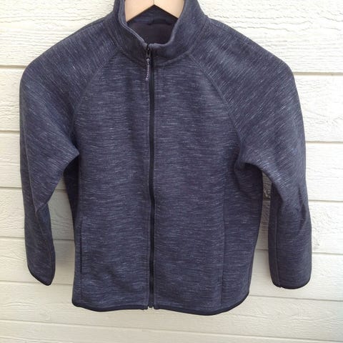 H&M fleecejakke i blå farge, størrelse 122, designet for barn og passer begge kjønn. Jakken har glidelås foran og er laget av mykt fleece-materiale.
