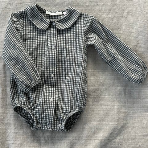 Blått skaut til barn / jente i tynt olastoff, med blomster og knyting.